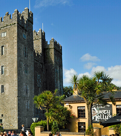 One of the most dramatic days of your tour brings you from Dingle to the west coast of County Clare. First stop will be the Village of Adare in County Limerick. Adare is regarded by many a seasoned traveller as Ireland’s prettiest village with its charming thatched cottages, manicured public park and ancient church. From Adare continue towards Limerick City of ‘Angela’s Ashes’ fame and home to King Johns Castle. Shortly after this, you arrive at Bunratty Castle. Built in 1425, this majestic castle was restored in 1954 to its former medieval splendour. Within the grounds of the Castle is Bunratty Folk Park where 19th century Irish life is vividly recreated. Continuing on to the magnificent ‘Cliffs of Moher’. The majestic Cliffs of Moher are without doubt one of Ireland’s most spectacular sights and overlook the Atlantic Ocean on the coast of West Clare. You then arrive at the village of Doolin. Doolin is world-famous for its wealth of Irish folk music and in recent years has been attracting crowds to spontaneous sessions in any one of its excellent pubs. Just north of the Cliffs you then have the lunar like Burren region and the ancient Poulnabrone Dolmen Tombs.