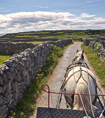 Depart early morning for your journey to Inis Mór, the largest of the three the Aran Islands. Protected from outside influence due to their remote location, the Aran Islands display the traditional Ireland that the rest of the country has largely left behind. Learn about the Aran Jumper and traditional crafts such Basket Weaving. On Inis Mór, you will still find the traditional horse and trap and hear the Gaelic language spoken as the first language. There are more than 50 different monuments of pre-Christian importance on the islands, the most popular being the fort of Dun Aonghasa which stands dramatically against the cliff edge over the western part of the Island. After a long day to explore the island at your leisure take the return ferry back to Rossaveal and the return shuttle back to Galway City.