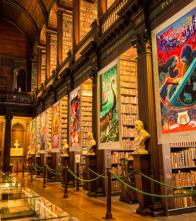 Meet your tour director at 2:00 PM in the 5-star Shelbourne Hotel, a beloved institution that has been at the heart of Dublin for nearly 200 years. Set out for a guided walking tour of Trinity College, established in 1592. Visit the beautiful library and enjoy fast-track entry to the Book of Kells. This illuminated manuscript of the Four Gospels, created in the 9th century by monks, is possibly Ireland’s greatest cultural treasure. Next, head to the Little Museum of Dublin, located in a Georgian building steps away from your hotel, for an exclusive after-hours visit. Join the museum’s director on a personal tour and nibble on canapés and sip wine or beer at a private VIP welcome reception.
