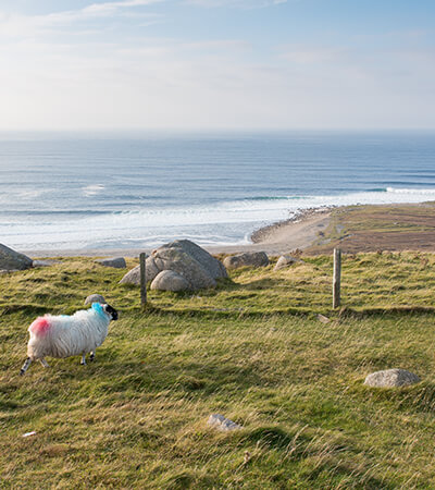 The most direct route to Donegal will have a driving time of less than 4 hours. On route to Donegal you will travel by Ireland’s most visited pilgrimage location, the Shrine at Knock. Shortly after this, you can take a slight detour to the Coleman Irish Music Centre is a celebration of Irish Music, Culture and Heritage as expressed in the South Sligo style of music played by Michael Coleman and other musicians of his time. Southwest of Sligo Town you will find the Ancient Tombs of Carrowmore. Over 60 tombs have been located by archaeologists to date. Dating back to nearly 5,000 B.C. and centuries older than the Pyramids of Egypt, Carrowmore is Ireland’s largest megalithic cemetery and is considered to be one of the most important in Europe. Shortly after leaving Sligo on route to County Donegal you will arrive at Drumcliff Churchyard, perhaps the most visited graveyard in Ireland. William Butler Yeats is buried here under the epitaph that he penned, “Cast a Cold Eye on Life, on Death. Horsemen, pass by!”. The Churchyard stands in the shadow of the magnificent Benbulben. Continue north until you reach Belleek home to Belleek Pottery, where there is an excellent visitor centre that is open from April to October. Set up in 1857, the factory is famous worldwide for its ornate fine Parian China. Other major touring attractions in Donegal include the Railway Heritage Centre, Donegal castle and Donegal Craft Village in Donegal town. Heading west from Donegal Town, on the edge of the Atlantic is Ireland’s premier fishing port of Killybegs. Nearby are the magnificent Slieve League Cliffs which at over 1,000 ft. (300 meters) the cliffs are the highest marine cliffs in Europe. Next stop along this route is the Gaelic speaking village of Glencolmcille where you can take the opportunity to relive local rural life as experienced in 18th, 19th and 20th century Ireland.