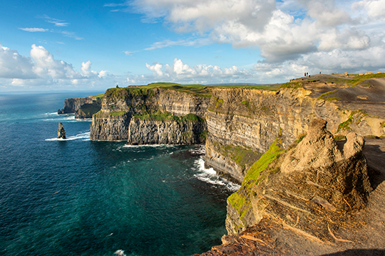 Departing Bunratty, travel north to the provincial town of Ennis in County Clare. As well as presenting a typical example of Irish town life, Ennis is the capital of County Clare. Continuing on from Ennis to the magnificent ‘Cliffs of Moher’. The Cliffs lay claim to one of the most astonishing views in Ireland. On a clear day the Aran Islands are visible in Galway Bay as well as the valleys and hills of the Connemara region. The Cliffs of Moher rise from Hag's Head to the south and reach their highest point (214 meters) just north of O'Briens Tower. There are over seventy megalithic tombs in The Burren region of County Clare, the most well known and most easily accessible being the Poulnabrone Dolmen Tomb. Radiocarbon dating suggests that the burials in this tomb took place 3800 and 3200 BC. The Burren lunar like landscape is an area of limestone rock covering imposing majestic mountains, and tranquil valleys with gently meandering streams. The village of Doolin is a small fishing village, set in a sandy bay some 3km from the northern end of the Cliffs of Moher. Doolin is world-famous for its wealth of Irish folk music and in recent years has been attracting crowds to spontaneous sessions and festivals of Irish and international music. There are many music pubs and restaurants to be found in this village.