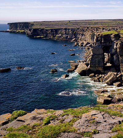 Depart early morning for your journey to Inis Mór, the largest of the three the Aran Islands. Protected from outside influence due to their remote location, the Aran Islands display the traditional Ireland that the rest of the country has largely left behind. Learn about the Aran Jumper and traditional crafts such Basket Weaving. On Inis Mór, you will still find the traditional horse and trap and hear the Gaelic language spoken as the first language. There are more than 50 different monuments of pre-Christian importance on the islands, the most popular being the fort of Dun Aonghasa which stands dramatically against the cliff edge over the western part of the Island. After a long day to explore the island at your leisure take the return ferry back to Rossaveal and the return shuttle back to Galway City.