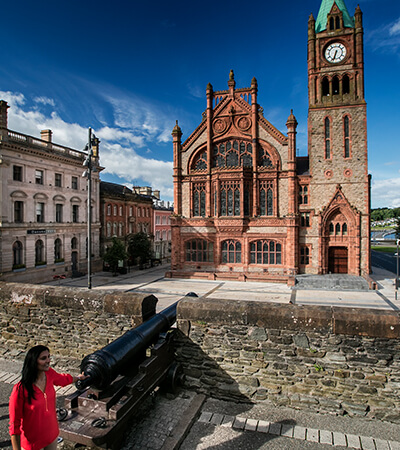 Stop in the pilgrimage town of Knock to see one of the world’s leading Catholic shrines. Visit the church where villagers saw a vision of the Virgin Mary in 1879. Immerse yourself in Irish farm life during a visit to an authentic working farm and watch trained sheepdogs round up mountain sheep. Head to Donegal for some free time in this charming town. Proceed to Derry and meet a local guide to discover the history of this ancient city that retains its fortified medieval walls dating from 1613. (B, D)