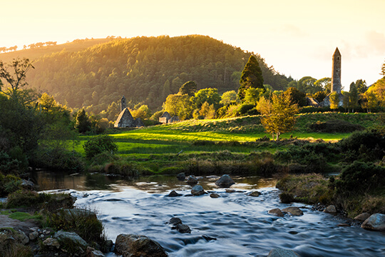 Today’s journey to Dublin takes in some of Ireland’s most historical landmarks. First of these is the ancient monastic settlement at Clonmacnoise. This is an early Christian site founded by Saint Ciaran in the 6th century on the banks of the River Shannon and includes the ruins of a cathedral, eight, two round towers, three high crosses and a large collection of early Christian grave slabs. From here, we travel either to Dublin or take a slight detour to the megalithic tombs of Newgrange. One of the great wonders of the ancient world, Newgrange is older than Stonehenge, Mycenae or even the Pyramids of Egypt and is foremost among the passage-tombs of Europe. From here, we travel south to Dublin City. Dublin city centre is a compact area, with all points of interest being easily accessible on foot. As a result you will find a large number of walking tours available, the most popular of which include the “Historical Walking Tour” and the “Literary Pub Crawl”. You may of course wish to visit many of the sights in your own time either on foot or with the Hop-On-Hop-Off bus service that stops at all of the major attractions including Dublin Castle, Trinity Castle & the Book of Kells, Kilmainham Gaol, the National Museum of Ireland and The Guinness Storehouse to name just a few.