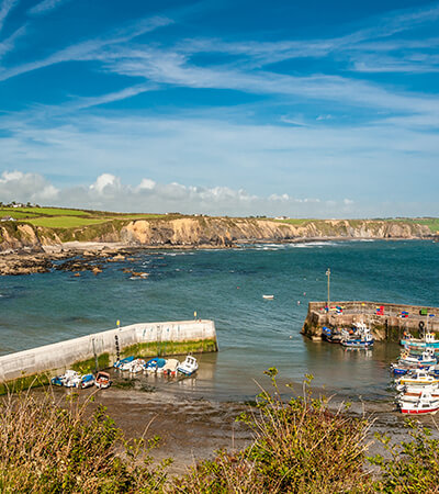 Waterford City itself has a great selection of touring choices; Waterford Crystal exhibits one of Ireland’s best renowned exports, visit the newly restored Bishops Palace where you can learn about the history of Waterford or Reginald’s Tower, the oldest city structure in Ireland that is now home to an informative exhibition. You may just choose to discover the shops, bars and cafés of this cosmopolitan city or take a romantic cruise along the River Suir. The historic town of Lismore is close by, here you can find many significant buildings including Lismore Castle & Gardens and St. Carthages Cathedral. Take the Towers Woodland Trail just outside the town and view the unusual gate lodge and bridge constructed by landlord Arthur Kiely Ussher to impress his demanding wife. The cost of building the elaborate Gothic entrance proved so great that the planned manor house was never constructed! Dunmore East can also be explored, here find a quaint and picturesque town with a lovely coastline and a number of lovely places to eat.