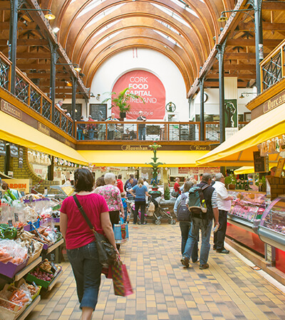 Cork city is quickly gaining a reputation as one of Europe’s trendiest cites and notable city attractions include the Church of Saint Anne Shandon which from the top gives a panoramic view of the city, St Fin Barre’s Cathedral and Cork City Gaol. Cork city is noted for its ethnic restaurants, chic bars and trendy boutiques. A great starting point for your city centre explorations is Cork’s English Market. The market is located in Cork city centre with its main entrances on Grand Parade, and on Princes Street, with further smaller entrances off Oliver Plunkett Street and Patrick Street. Established in 1788 by the Protestant or ‘English’ corporation that then controlled the country, the market has been at the heart of Cork city culture since its foundation.