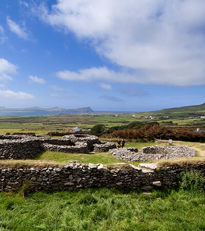 From Dingle head to the harbour village of Ventry, in which the ancient tale of the Battle of Ventry Strand is based. The tale as told in a 15th century manuscript describes how Daire Donn, King of the World, landed at Ventry in an attempt to invade Ireland and was defeated on the beachhead by Fionn Mac Cumhaill. You will also see Dunbeg Fort and the Blasket Islands just off the coast. Further along the coast road will bring you to the remains of Ferriter Castle and Dun An Oir. Here in 1580, after three days siege, over 600 Irish and Spanish soldiers surrendered to Lord Grey only to be massacred by his troops. Nearby is the Gallarus Oratory, one of the best preserved early Christian church buildings in Ireland. Back to Dingle for the evening. Here you will find among other great pubs and restaurants, Dick Macks, possibly Dingle’s most famous pub, which is half a leather shop and half a pub so you can buy a pint and a purse at the same time! Foxy John’s is a hardware store and pub combined – an unusual arrangement to say the least.