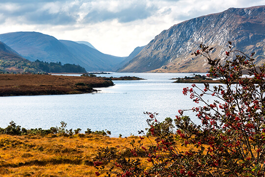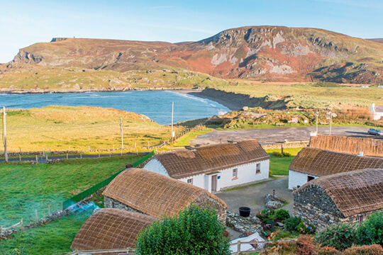 From Buncrana to Dunree Head and Fort Dunree, constructed in 1798 by the English as a defensive measure against Napoleonic invasion. At the top of the Inishowen Peninsula is Ireland’s most northerly point, Malin Head. It is not just Ireland’s most northerly point, but also an area of great scenic beauty and of historical, scientific and ecological importance. The area is steeped in history and folklore. Continuing around the peninsula, you arrive at the pretty village of Culduff with its stone circle. Deep in the heart of County Donegal is Glenveagh National Park and is considered by many to be Ireland's finest national park. At the core of the park is the Glenveagh Estate, originally the home of the notorious landlord John George Adair, much despised for his eviction of Irish tenant farmers in the 1860s.