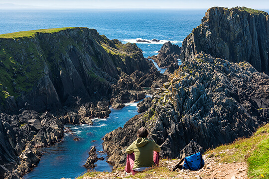 The most direct route to Donegal will have a driving time of less than 4 hours. On route to Donegal you will travel by Ireland’s most visited pilgrimage location, the Shrine at Knock. Shortly after this, you can take a slight detour to the Coleman Irish Music Centre is a celebration of Irish Music, Culture and Heritage as expressed in the South Sligo style of music played by Michael Coleman and other musicians of his time. Southwest of Sligo Town you will find the Ancient Tombs of Carrowmore. Over 60 tombs have been located by archaeologists to date. Dating back to nearly 5,000 B.C. and centuries older than the Pyramids of Egypt, Carrowmore is Ireland’s largest megalithic cemetery and is considered to be one of the most important in Europe. Shortly after leaving Sligo on route to County Donegal you will arrive at Drumcliff Churchyard, perhaps the most visited graveyard in Ireland. William Butler Yeats is buried here under the epitaph that he penned, “Cast a Cold Eye on Life, on Death. Horsemen, pass by!”. The Churchyard stands in the shadow of the magnificent Benbulben. Continue north until you reach Belleek home to Belleek Pottery, where there is an excellent visitor centre that is open from April to October. Set up in 1857, the factory is famous worldwide for its ornate fine Parian China. Other major touring attractions in Donegal include the Railway Heritage Centre, Donegal castle and Donegal Craft Village in Donegal town. Heading west from Donegal Town, on the edge of the Atlantic is Ireland’s premier fishing port of Killybegs. Nearby are the magnificent Slieve League Cliffs which at over 1,000 ft. (300 meters) the cliffs are the highest marine cliffs in Europe. Next stop along this route is the Gaelic speaking village of Glencolmcille where you can take the opportunity to relive local rural life as experienced in 18th, 19th and 20th century Ireland.